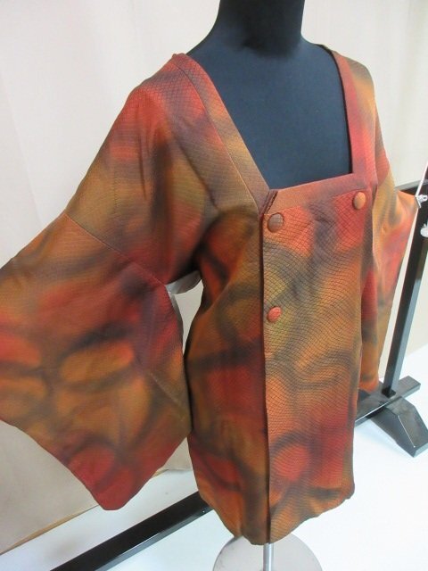 ○○.5以上は繰り上げ表記させていただいております。 2cm未満の場合は誤差となりますので、大変申し訳ございませんがご容赦下さい。 身丈:76cm 袖巾:33cm 袖丈:47cm 前巾:20cm 裄:66cm 後巾:30cm ※中シミ・劣化等がございます |