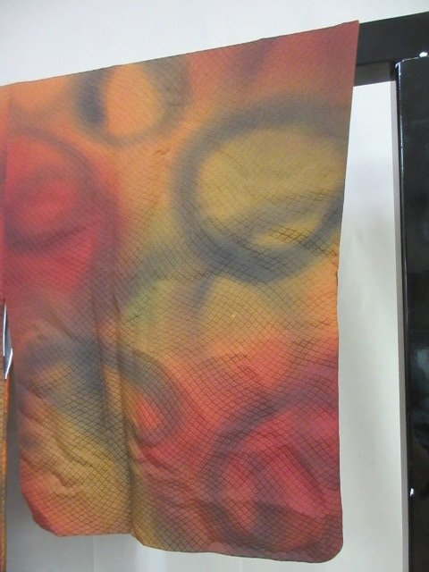 | 商品名 | 1円 中古 羽織 正絹 和装コート 縮緬 道行 グラデーション 幾何学 袷 おしゃれ 身丈76cm 裄66cm【夢職】11/28閉店★ |
