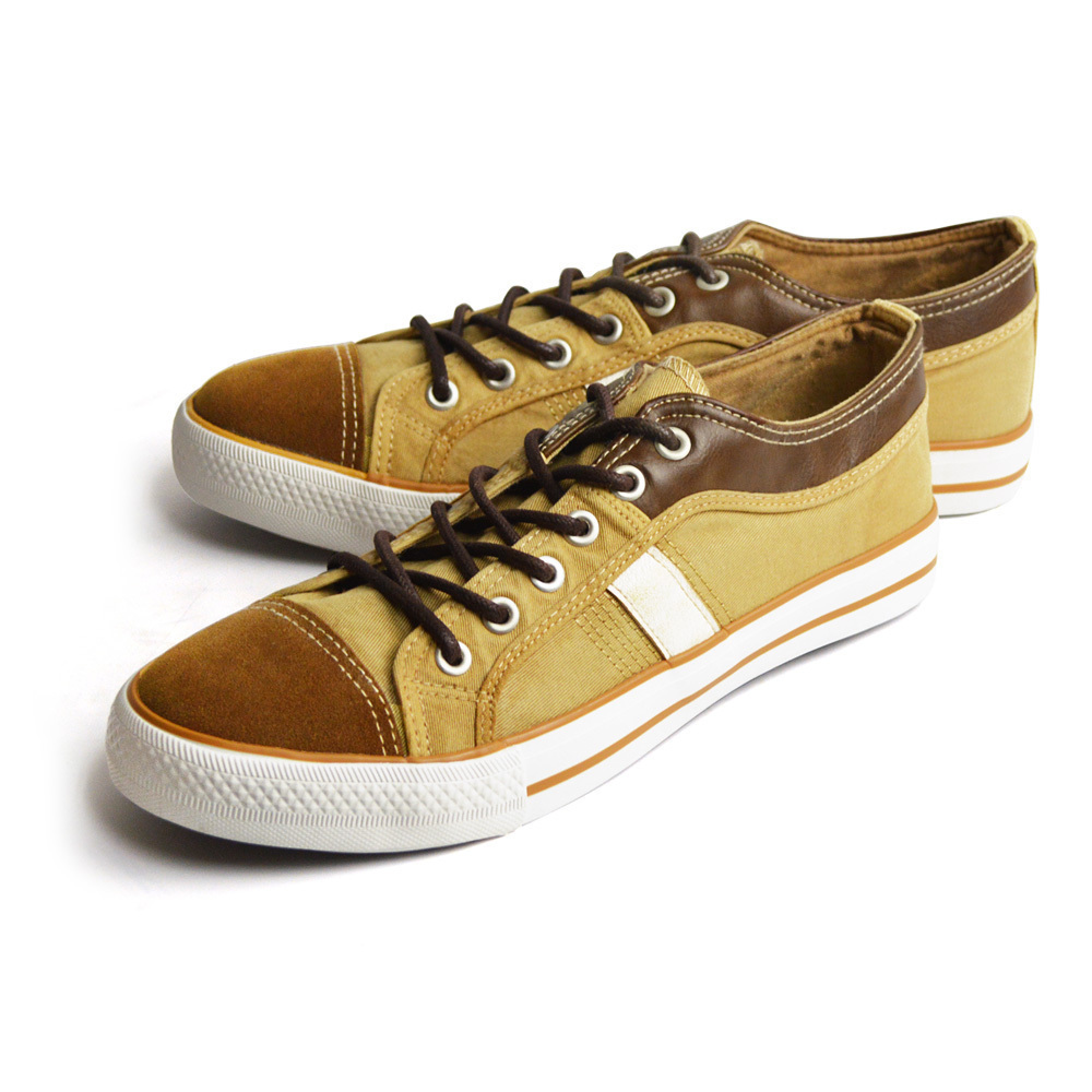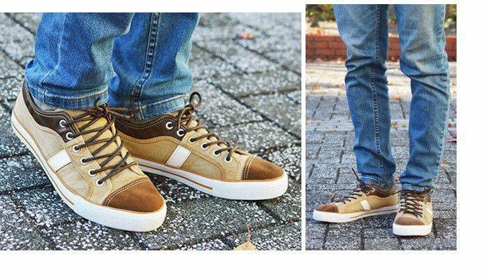 新品【25.5cm】軽量 ローカット スニーカー カジュアルシューズ 紐靴 レースアップ 異素材 キャンバス スエード 靴【エコ配送】