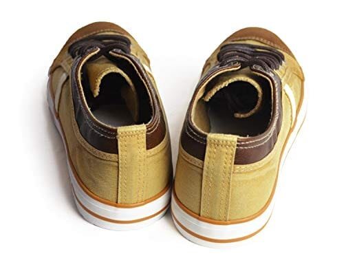キャンバス生地なのでラフ感のある印象だが、履き口の革風素材でキリっと引き締め。