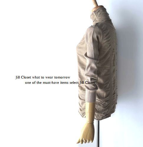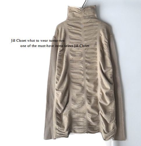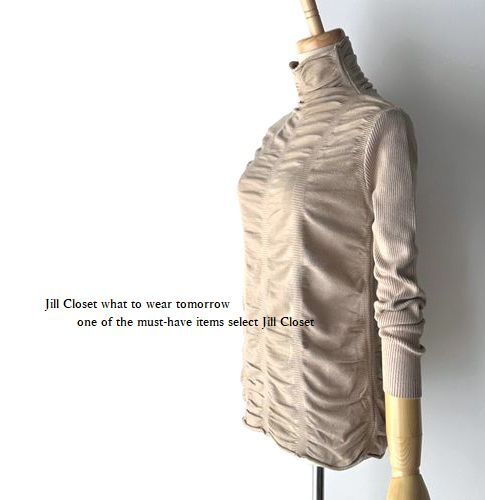 新品【送料185円】万能♪伸縮性抜群 シャーリングストレッチニット×リブ*緩やかハイネックdesign*通勤オフィス対応◎プルオーバー4197.BE