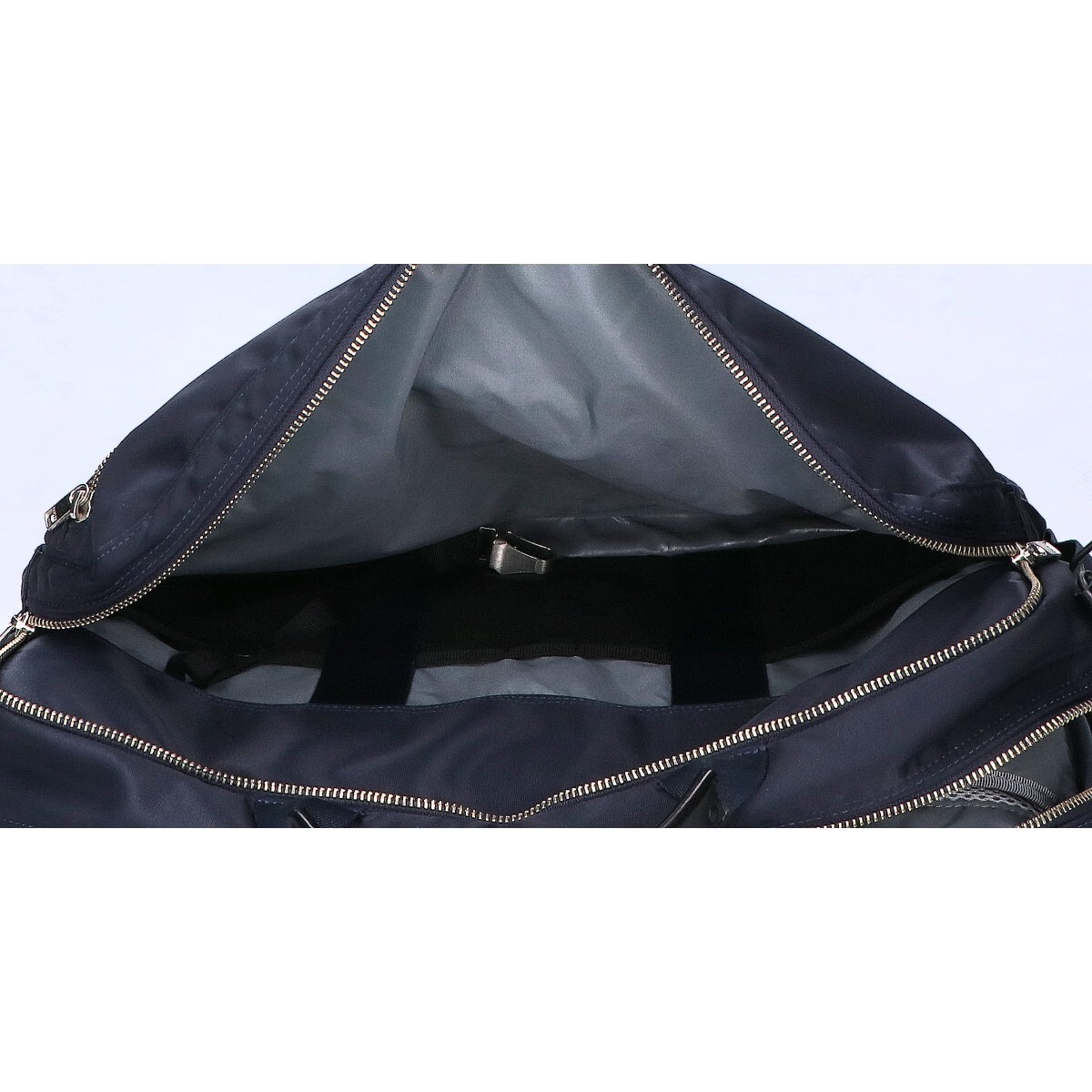 外側詳細:ナイロン表面に擦れ傷、擦れ汚れがございます。背面に擦れ、若干の毛羽立ちがございます。角擦れがございます。ハンドルに擦れ傷がございます。Dカン、メタル部分に傷、メッキ剥がれがございます。