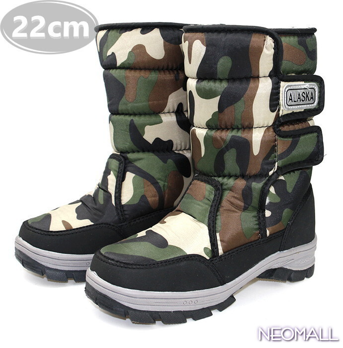 キッズ スノーシューズ 【953】 22.0cm グリーン ムートンブーツ スニーカー ウィンターブーツ 裏起毛 防水 防寒 防滑 冬用靴 綿靴