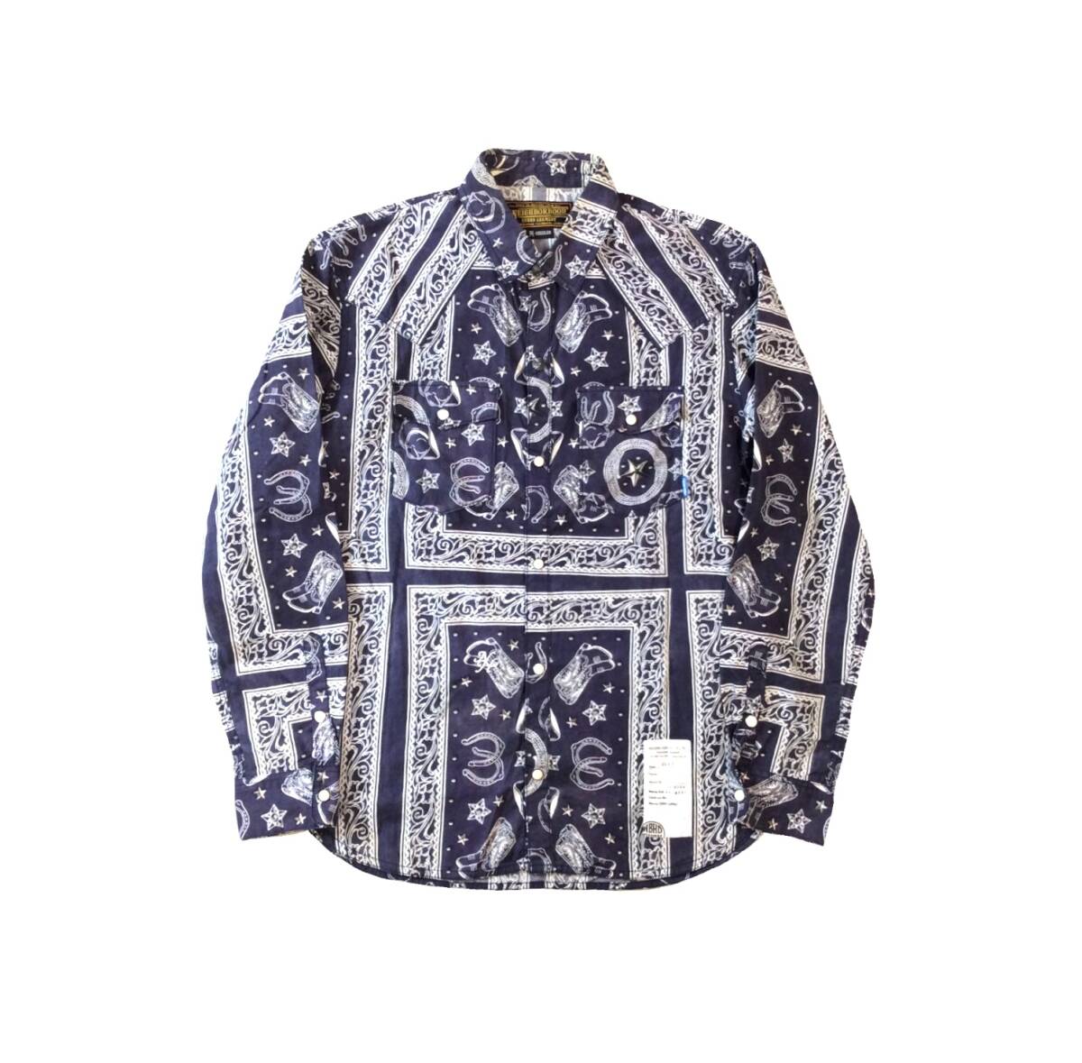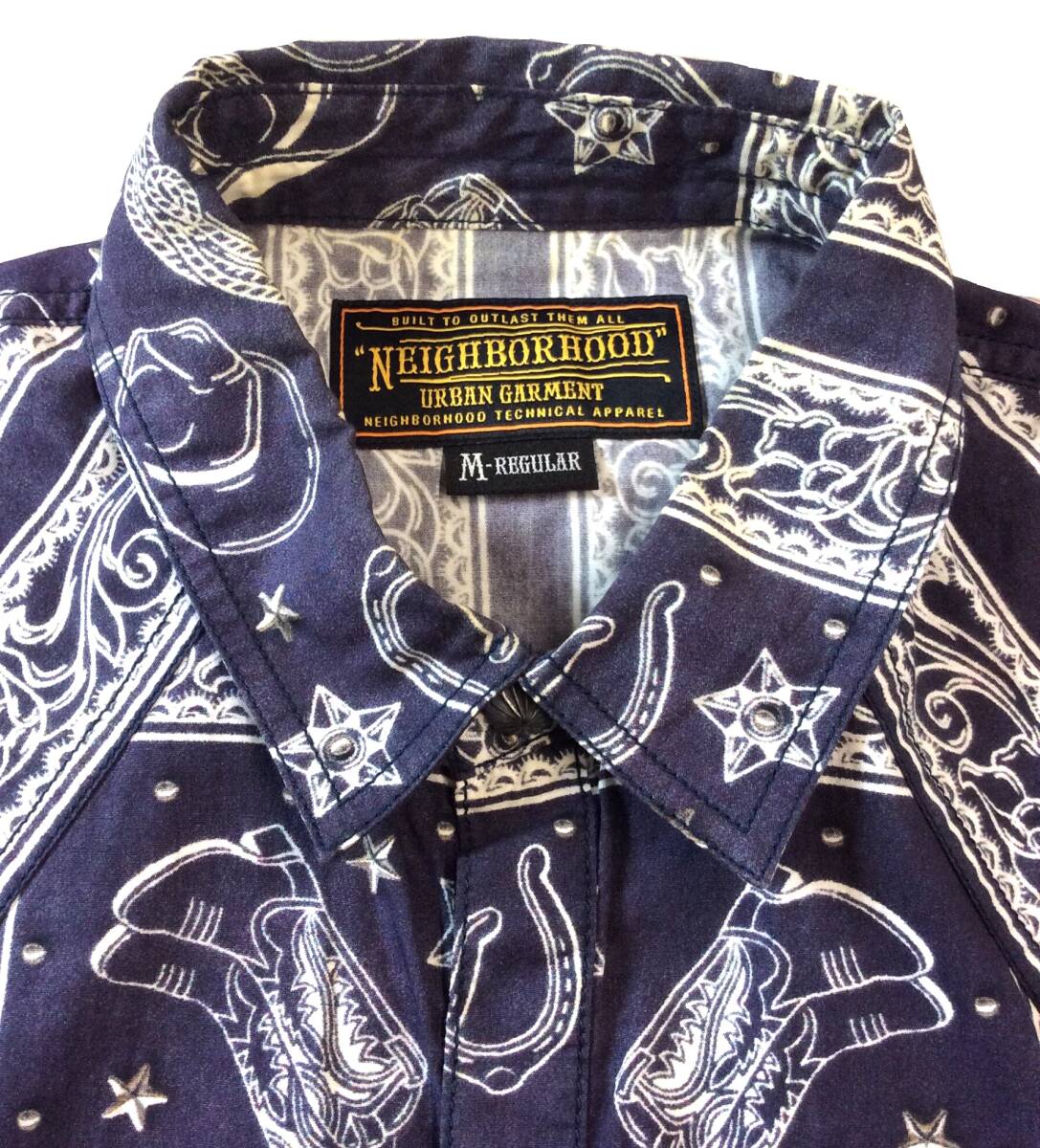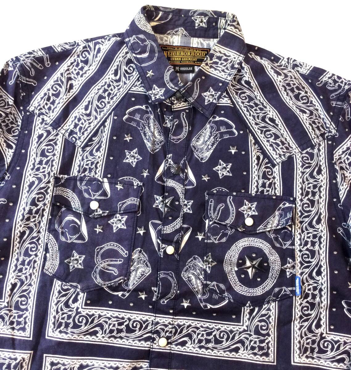 NEIGHBORHOOD ネイバーフッド ウエスタン柄 長袖 シャツ ウエスタンシャツ ネイビー RAWHIDE メンズ M