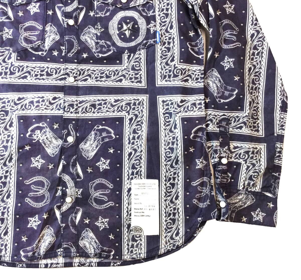 NEIGHBORHOOD ネイバーフッド ウエスタン柄 長袖 シャツ ウエスタンシャツ ネイビー RAWHIDE メンズ M 送料250円