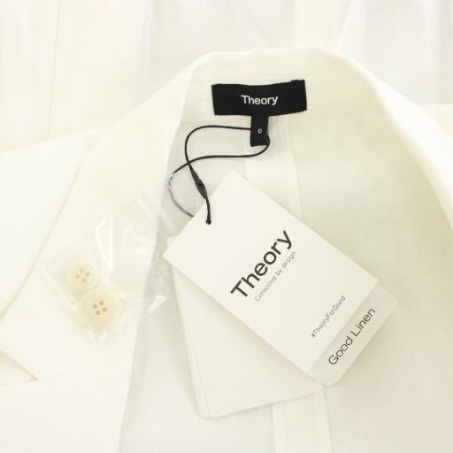 未使用品 セオリー 25SS グッドクランチウォッシュストレートブレザージャケット テーラードジャケット 麻 0 白 01-5104107 レディース
