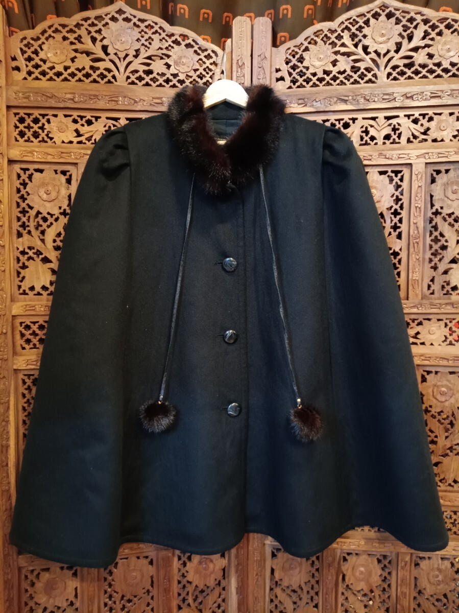 QYC Leilian レリアン ミンクファー ポンチョ マント ポンチョコート ウールコート 冬物 アウター 古着