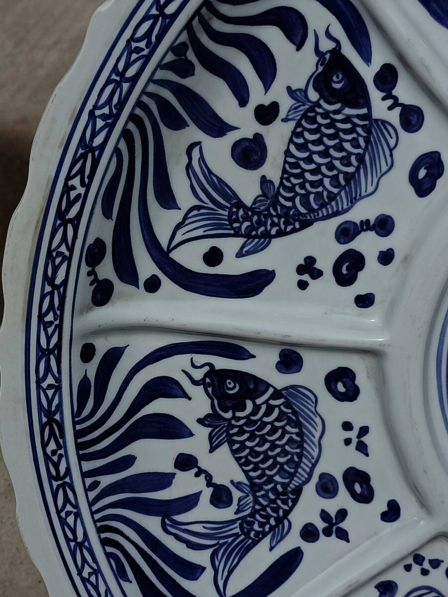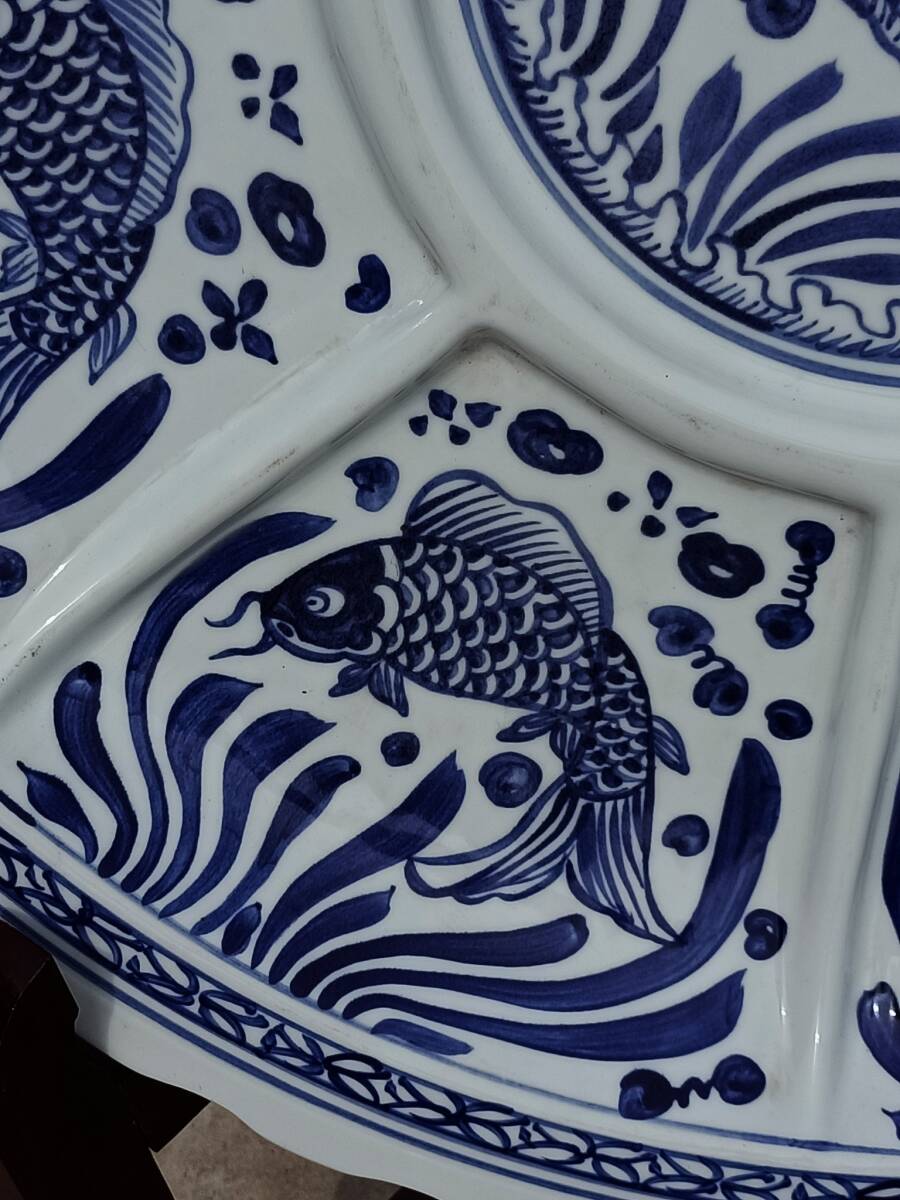 【惠】中国骨董  陶芸 磁器【旧蔵老魚皿です】工芸品 施釉陶 青花磁 陶芸 置物 收藏品