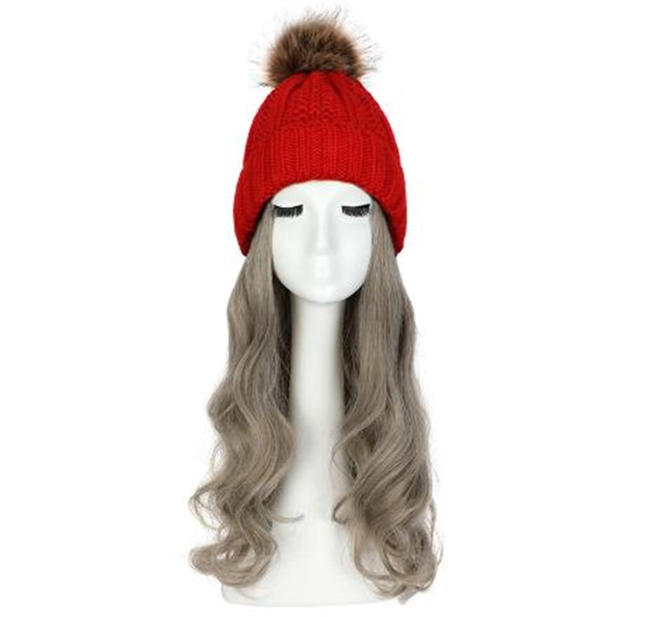 ウィッグ付きニット帽 ニット帽/レッド ウィッグカラー/G ロングヘアー イメチェン 髪色チェンジ コスプレ