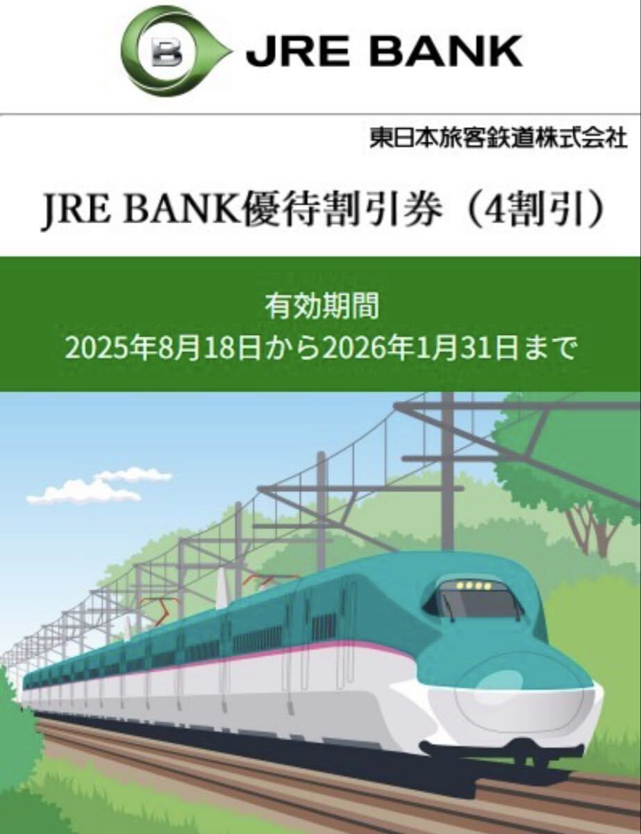 JRE BANK 優待割引券(4割引)です。料金表示は、1枚あたりの値段です。