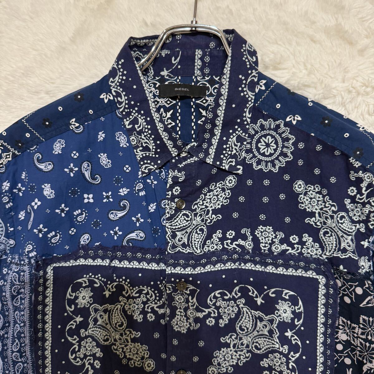 DIESEL ディーゼル XXL 長袖 シャツ バンダナ ペイズリー パッチワーク