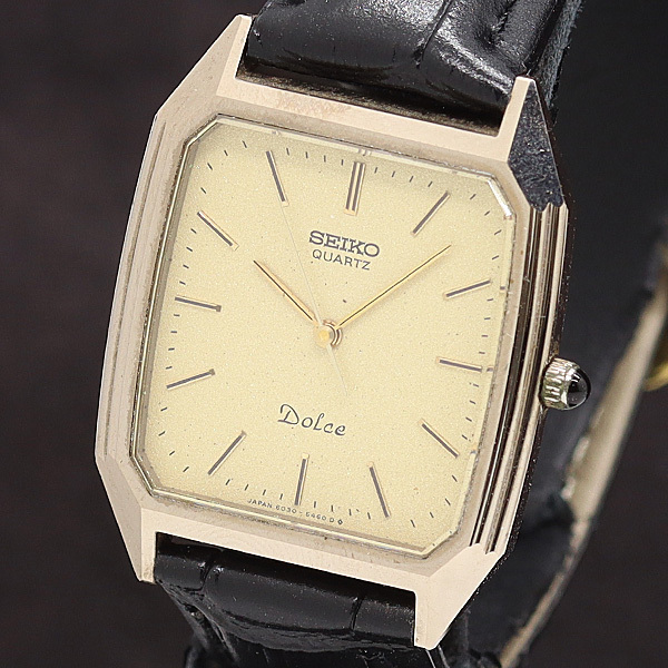 1円 稼働 セイコー ドルチェ 6030-5390 220513 QZ ゴールド文字盤 メンズ腕時計 0506000 11ERT SMZ