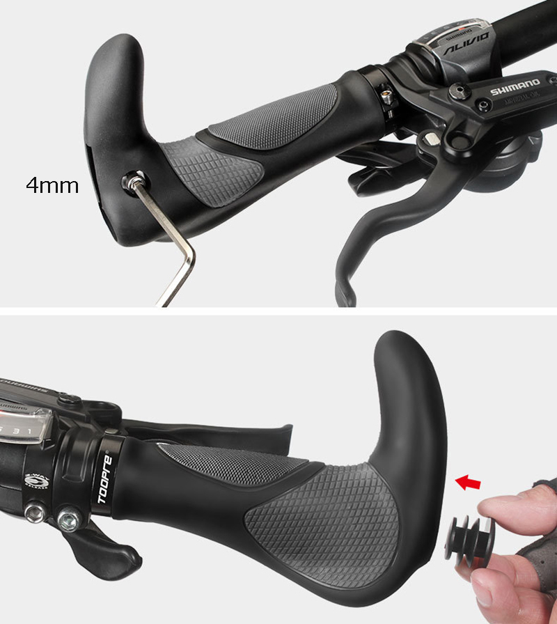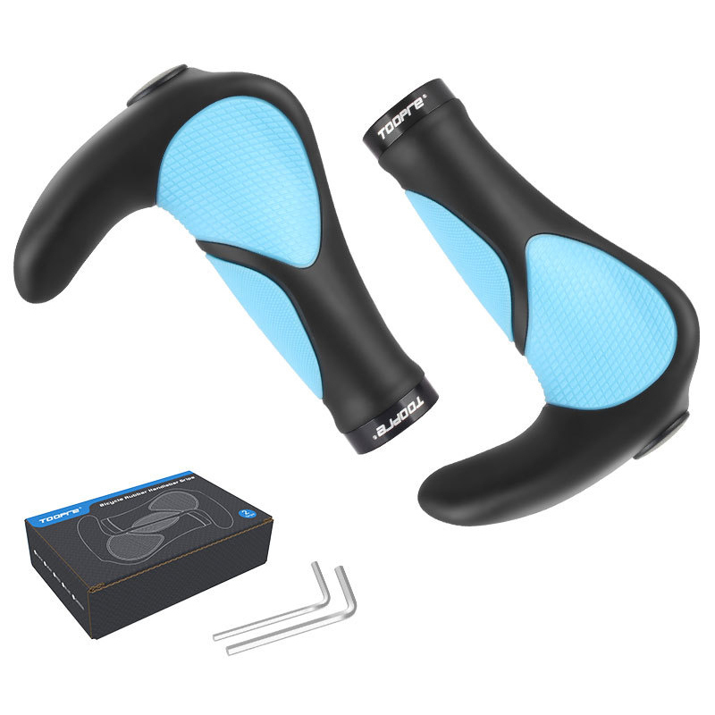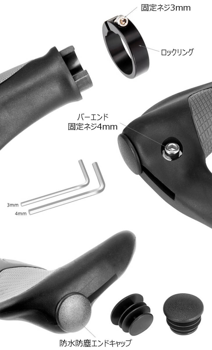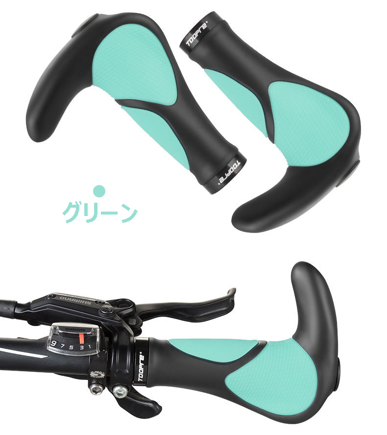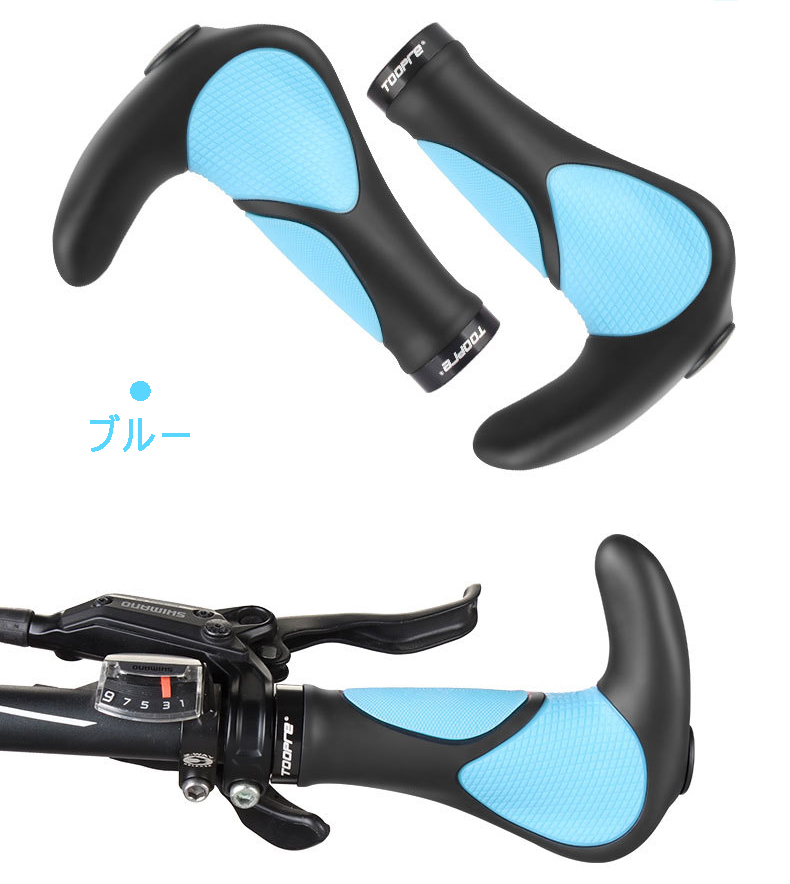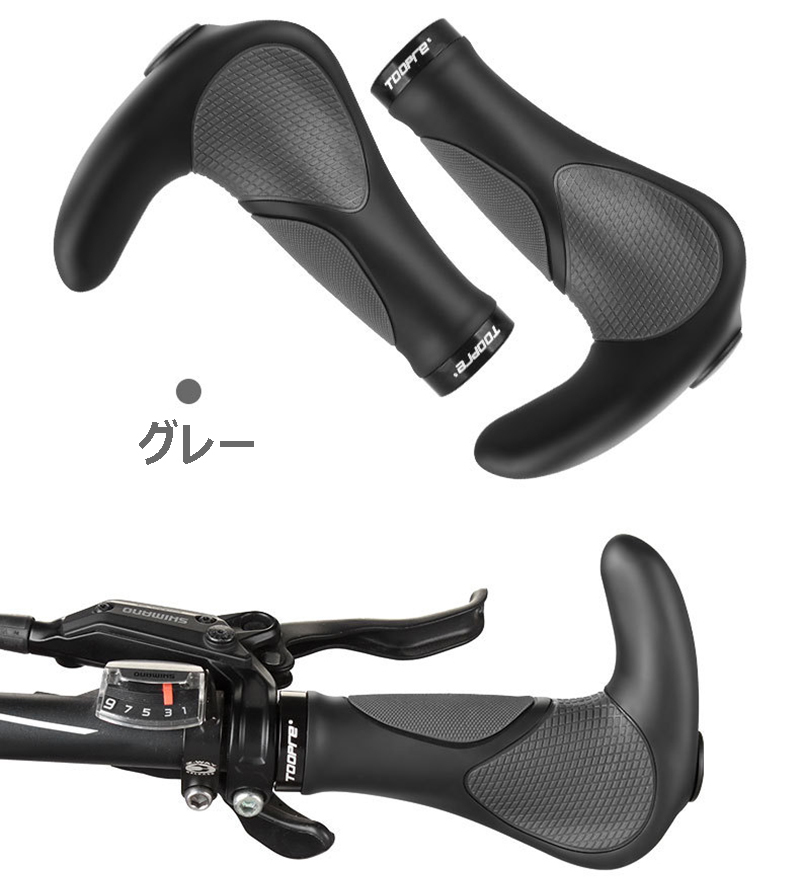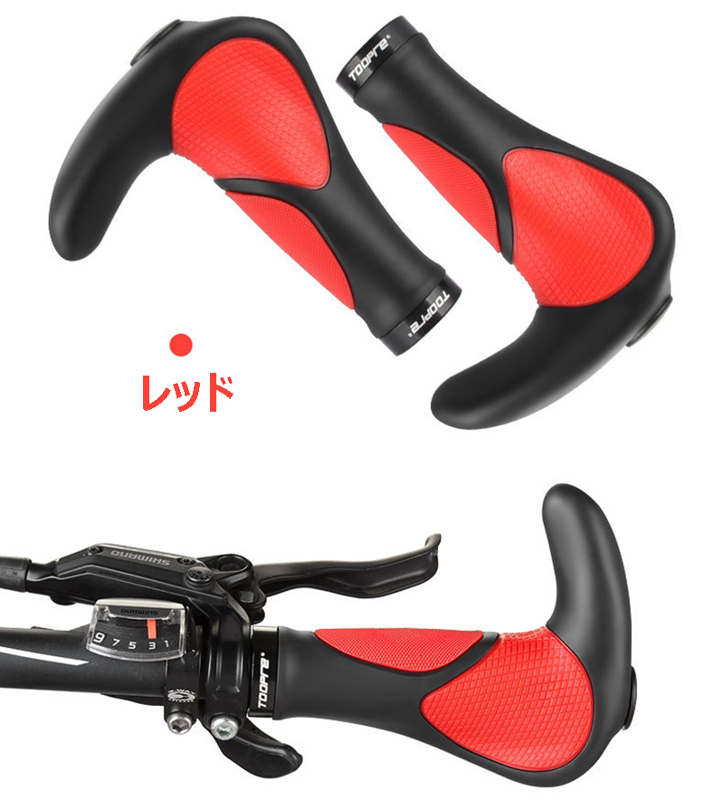 自転車グリップ 左右セット 牛角型バーエンド MTBハンドルグリップ 疲労緩和 圧力分散 色指定可