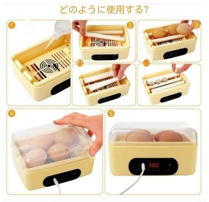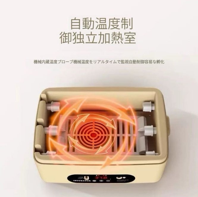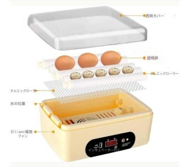 自動卵インキュベーター: 高密度フォーム断熱材が付属しており、卵のすべての部分が均等に暖かくなり、孵化率が効果的に向上します。