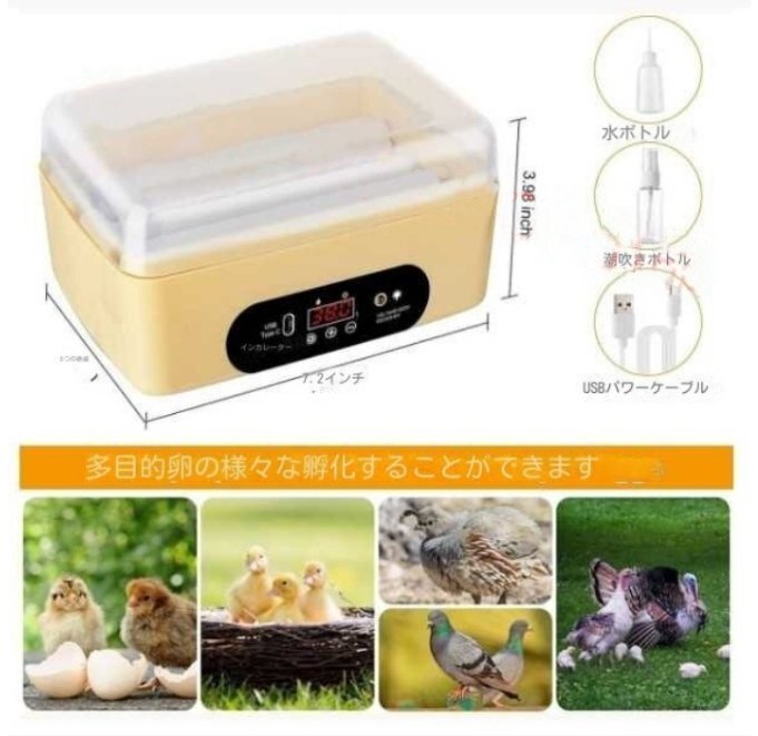 自動孵卵器 インキュベーター 孵化器 自動転卵 デジタル表示 自動温度制 湿度保持 子供教育用 家庭用 孵化率アップ 卵4~6個 鳥類専用