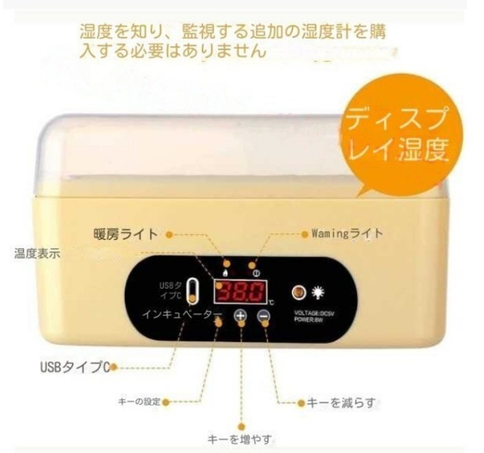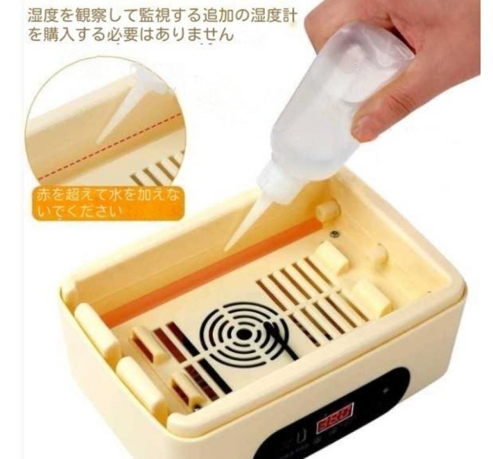 【孵卵器★良いデザイン】①蓋が半透明の状態:卵の孵化プロセスははっきり見られます。②温度センサー装置:箱内の温度を監視します。③排水穴の設計: 水量が高すぎると自動的にあふれ出し、卵が水に触れないようにします ④グリッドトレイ:空気循環を確保し、掃除が簡単 。