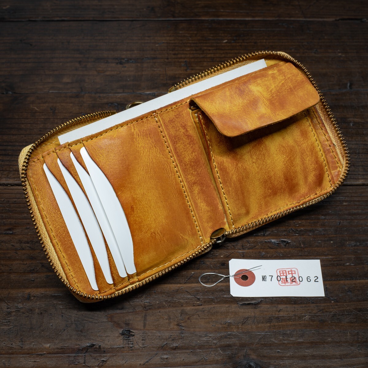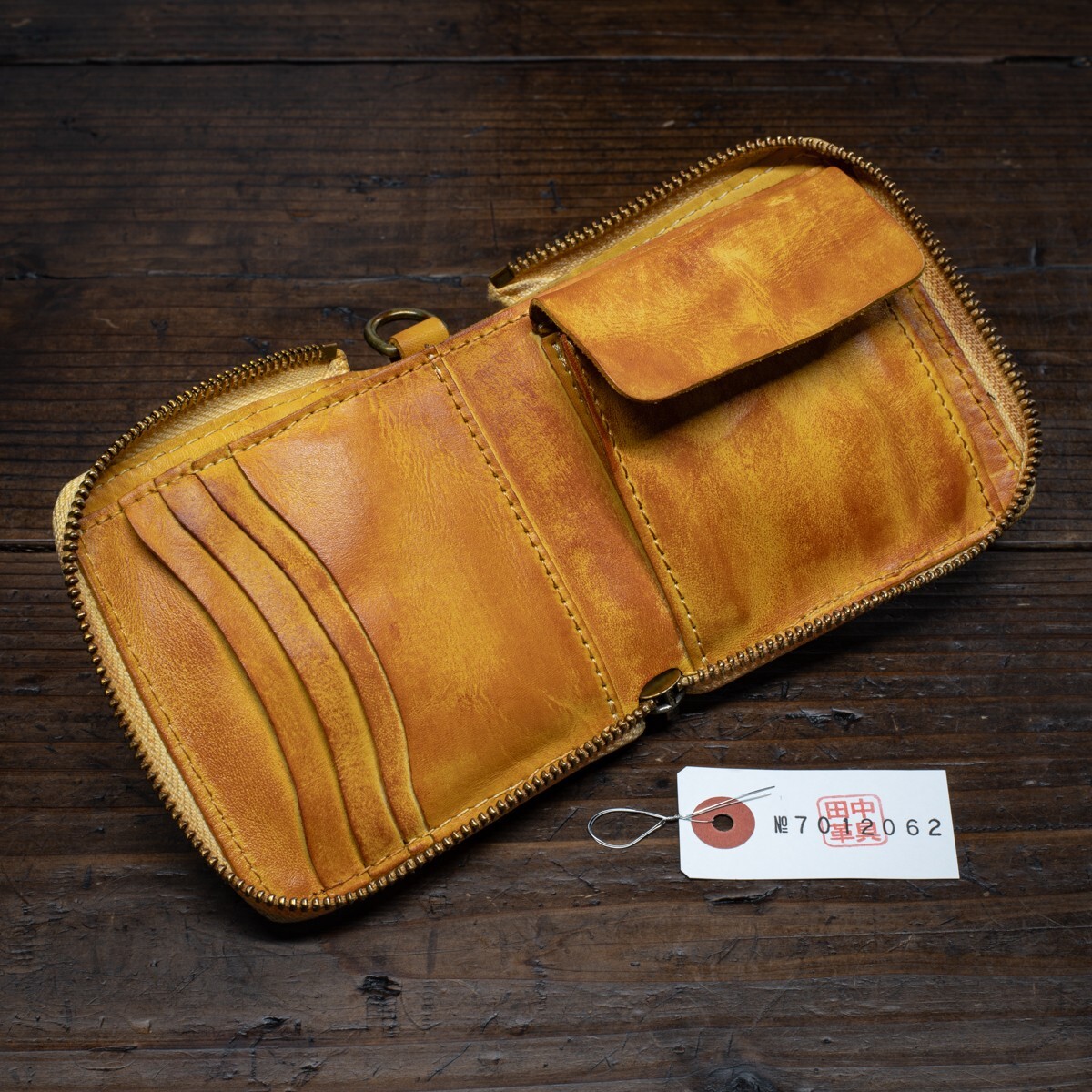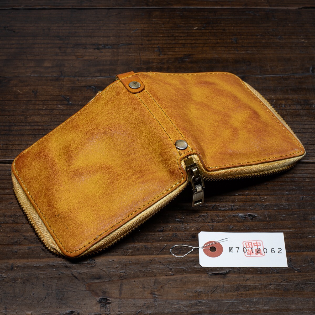 ウォッシュドレザー【牛革】ミドルウォレット ラウンドファスナー 二つ折り メンズ 本革 財布 新品 未使用 送料無料 1円 茶色 田中革具