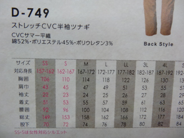 サイズ L寸  胸囲118cm, 肩幅49cm、袖丈25cm、着丈57cm、腰囲104cm、 総丈162cm、股下76cm