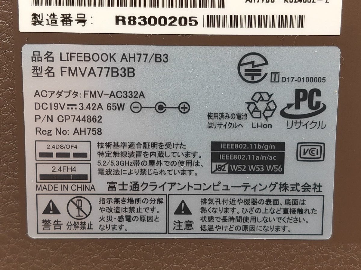 富士通 FUJITSU LIFEBOOK AH77/B3
