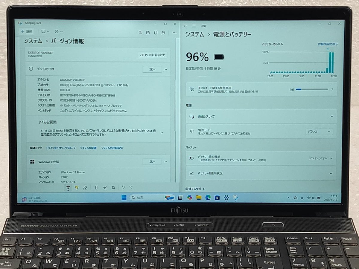 ●【難あり】富士通 FUJITSU LIFEBOOK AH77/B3 / i7-8550U / 8GBメモリ / 256GB SSD / 15.6型 / Windows 11 Home【 ITS JAPAN 】