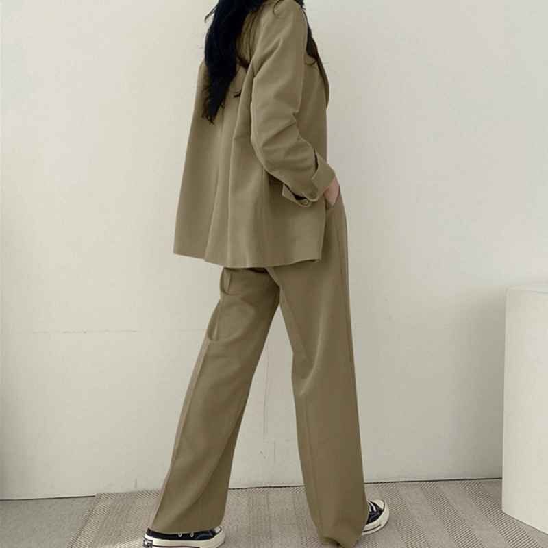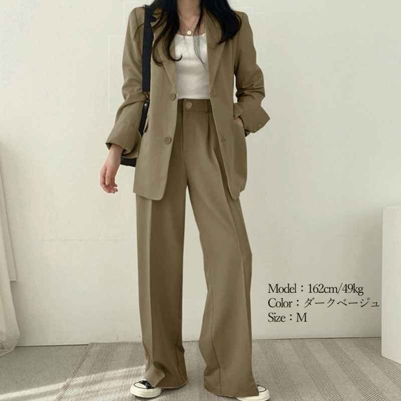 タック入りのワイドパンツでカジュアルさもありつつ、キチンと感もアップ。