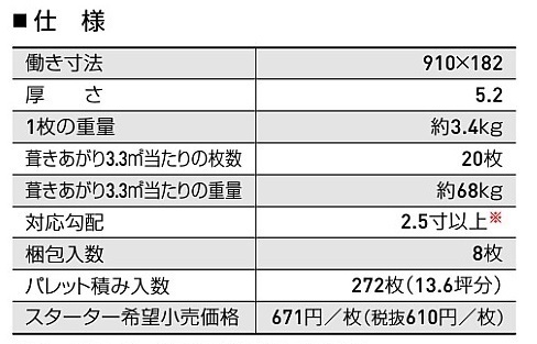 | 働き寸法 重量 | 910mm×182mm 約3.4kg |