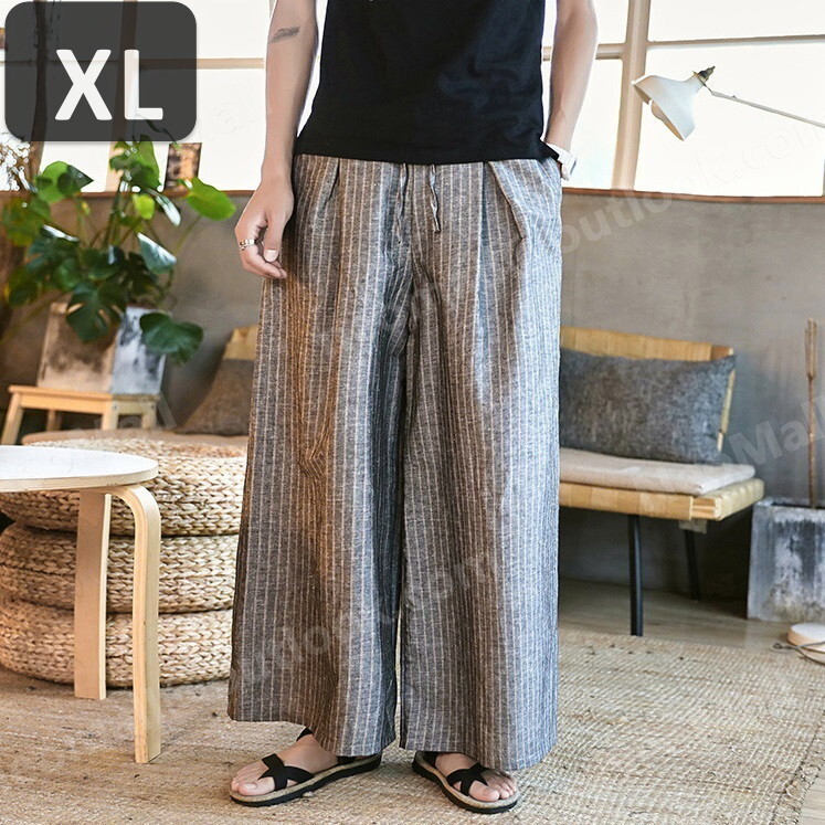 お買い得☆メンズ ワイドパンツ グレー XL カジュアル ロングパンツ スウェット 無地 ポケット付 オールシーズン【065】