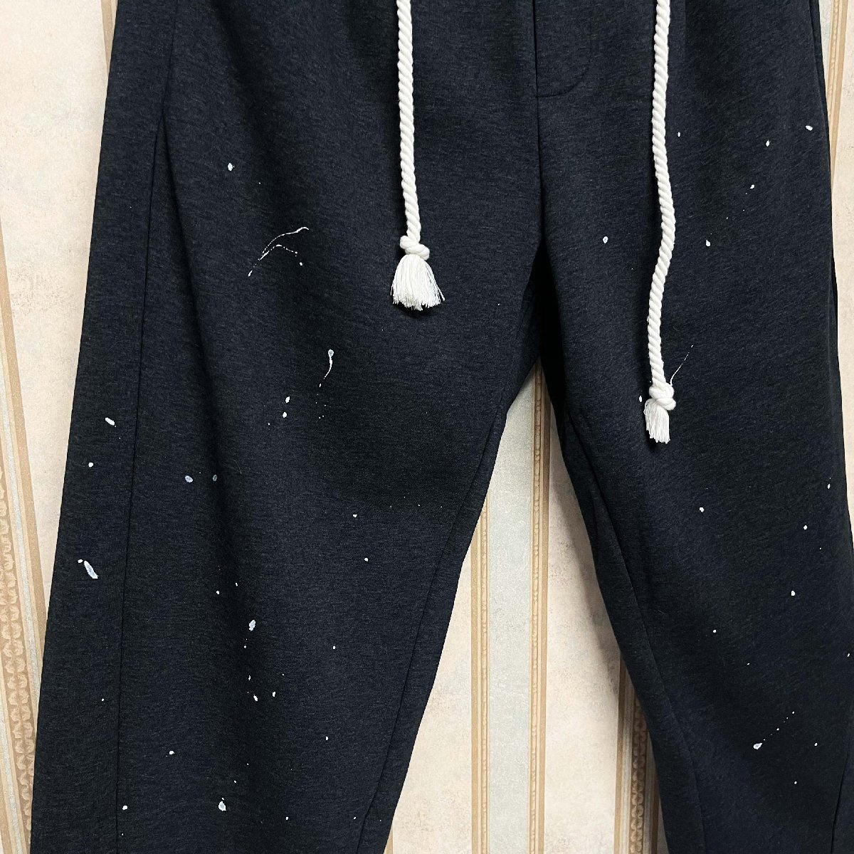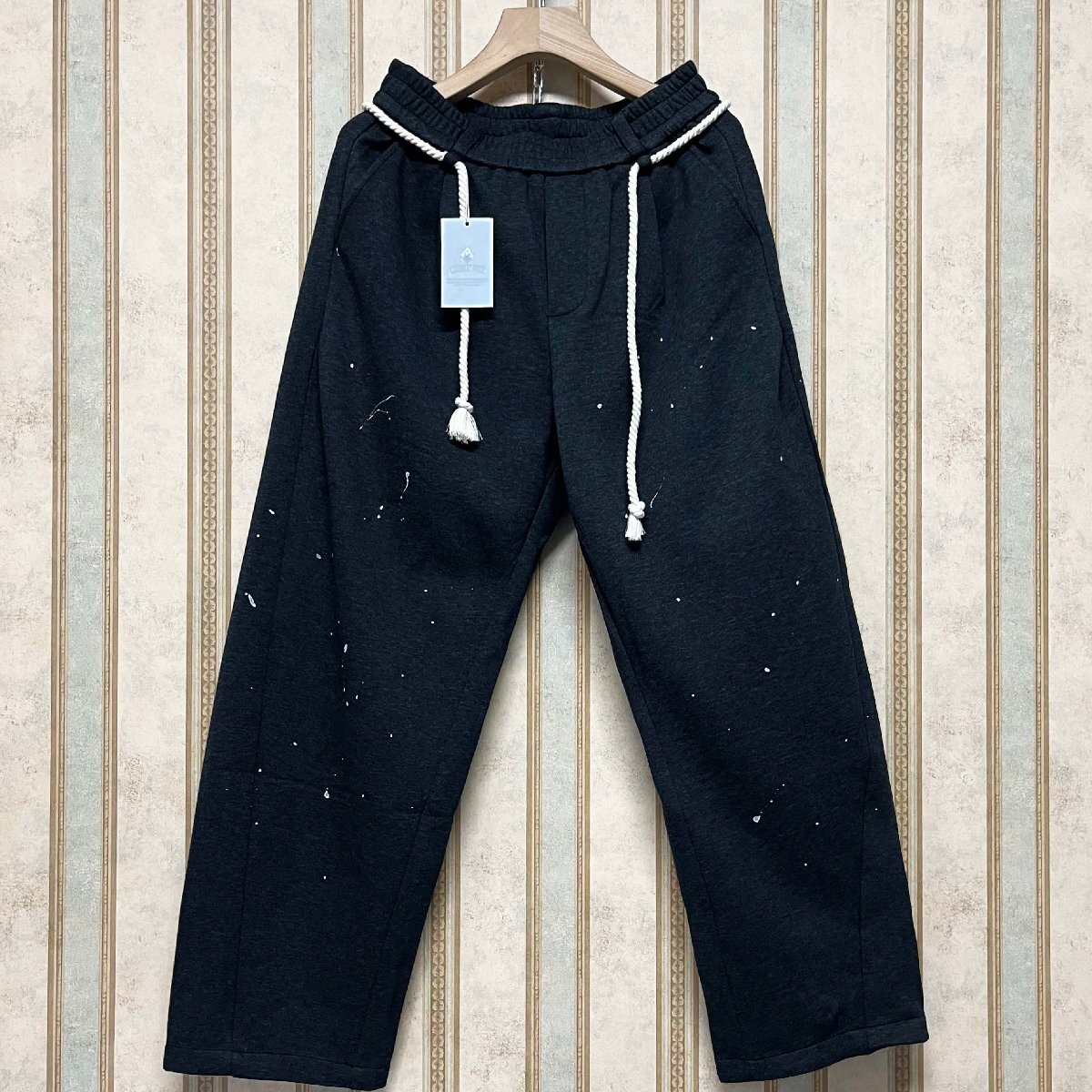 ウエストは幅広ゴム仕様で、さらに調節可能なドローストリング付きだから、自分にぴったりのフィット感で穿けるのも嬉しいポイント。全体的にゆとりのあるワイドなシルエットは脚のラインを拾わず、体型カバーもばっちり。スプラッシュ柄があしらわれた、シンプルながらも目を引くデザイン。個性的でありながらコーディネートに取り入れやすく、着こなしのアクセントとしても活躍します。