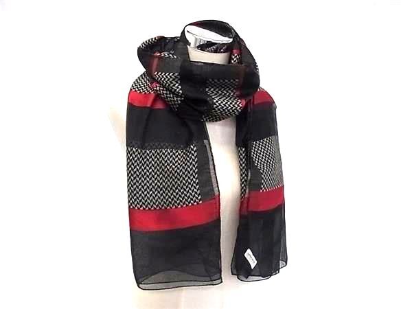 ■美品■ ARMANI COLLEZIONI アルマーニ コレッツィオーニ ウール×シルク スカーフ ストール ショール レディース ブラック系 DJ9866