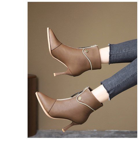 ショートブーツ 厚底 黒 ポインテッドトゥ ベルト 黒 ブラウン 脚長 茶色 美脚 22.5cm(35) ダークブラウン