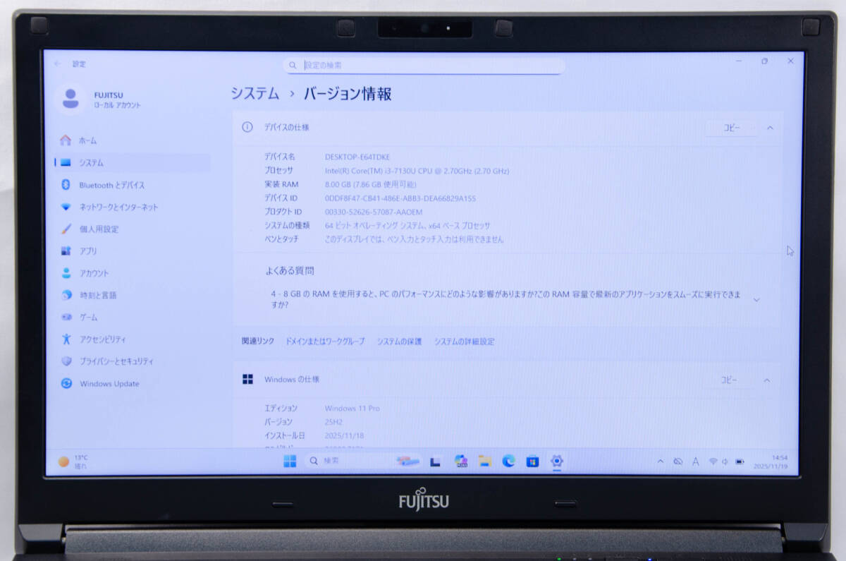 | CPU | Intel Core i3-7130U(Kaby Lake) 2.70GHz 第7世代2コア4スレッド超高性能CPU!! | |