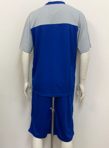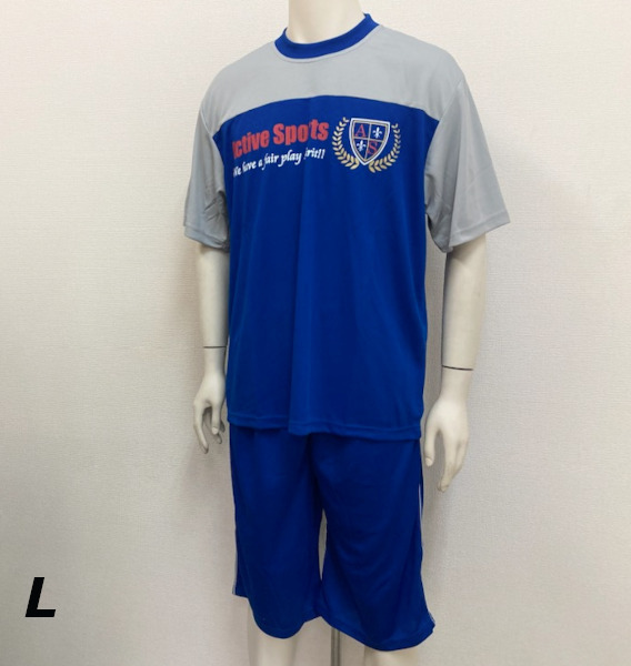 即決新品 メンズ 上下セット 半袖 ハーフパンツ Lサイズ ブルー切り替え ハニカム生地 送料無料