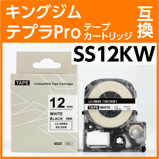 キングジム テプラPro用 互換 テープカートリッジ SS12KW〔SS12Kの強粘着〕12mm幅 白地 黒文字