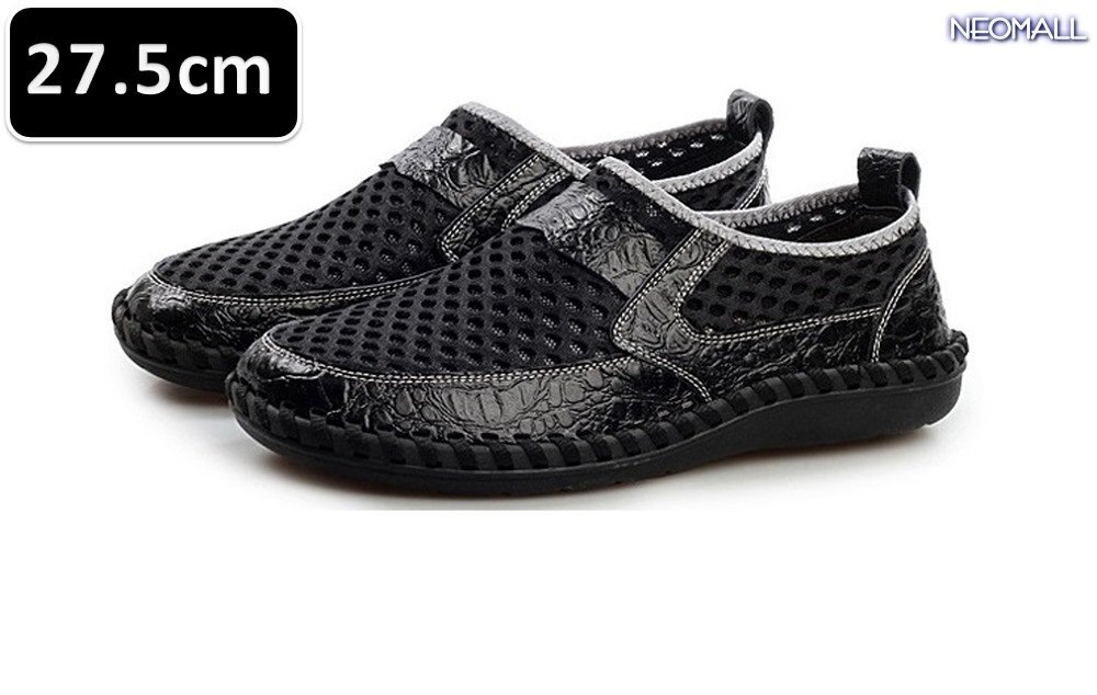 大人気☆ ローファー ドライビングシューズ【405】ブラック 27.5cm メッシュ 夏 通気 軽量 スニーカー スリッポン 紳士靴 カジュアル