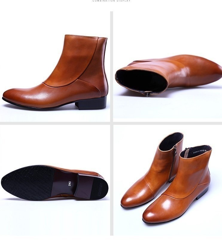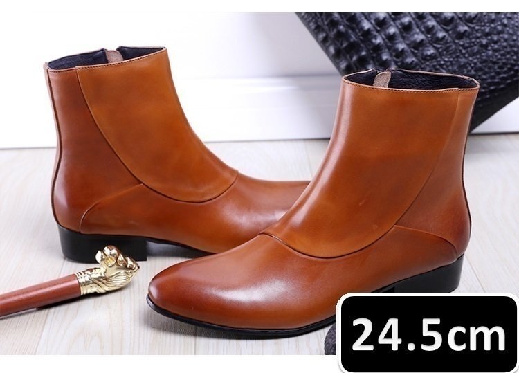 メンズ ビジネス シューズ 本革 ライトブラウン サイズ 24.5cm 革靴 靴 カジュアル 屈曲性 通勤 軽量 新品 ショートブーツ【apa-166】