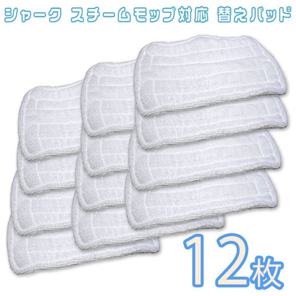 送料無料 シャークスチームモップ対応替えパット 12枚入り / 互換 / マイクロファイバースチームモップ対応 交換用パット スチーム パッド