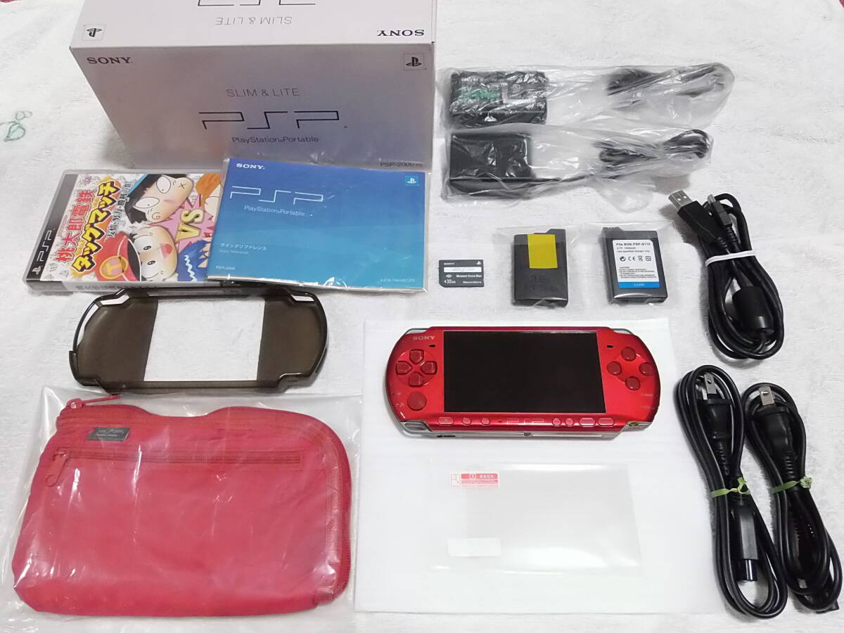 PSP3000 レッド かなり綺麗な美品 液晶画面は、ヤケ無し バッテリー2個 液晶フィルムは未使用 ポーチはバリューパック用 15点セット