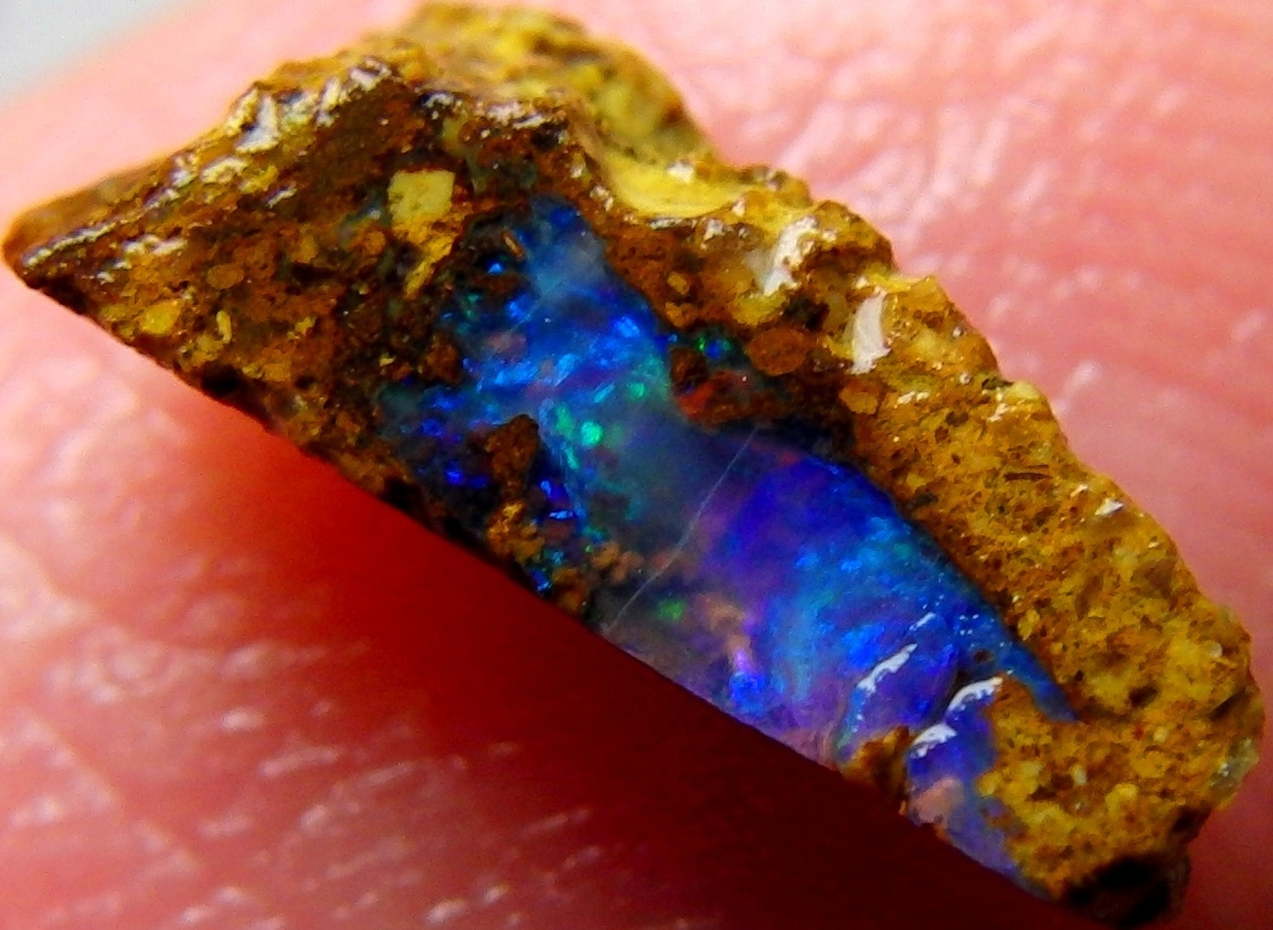 鉄の酸化鉱物である堆積褐鉄鉱(limonite)や砂岩の隙間に気の遠くなるような長い年月をかけてオパールが堆積・生成したもので、オーストラリア・クイーンズランド州の一部の地域のみ産出されるレアなボルダーオパールの一種です。