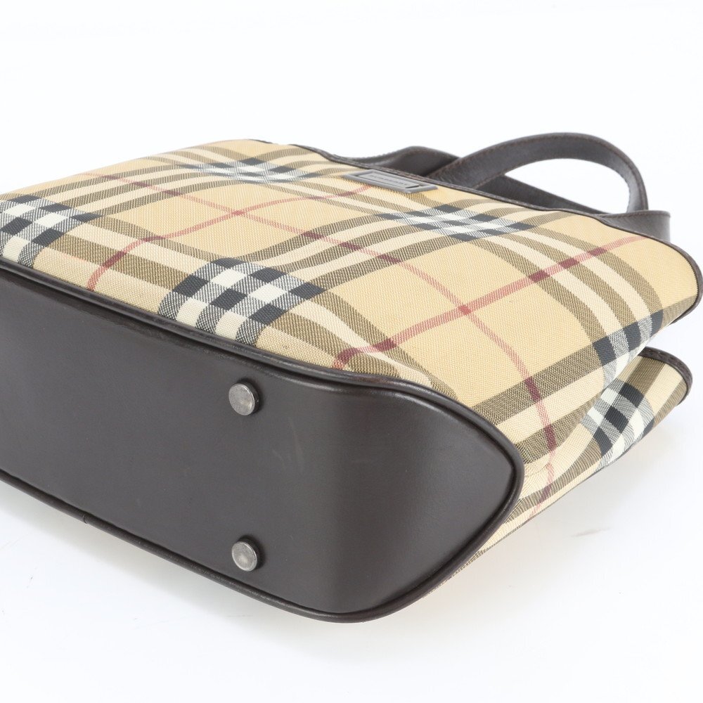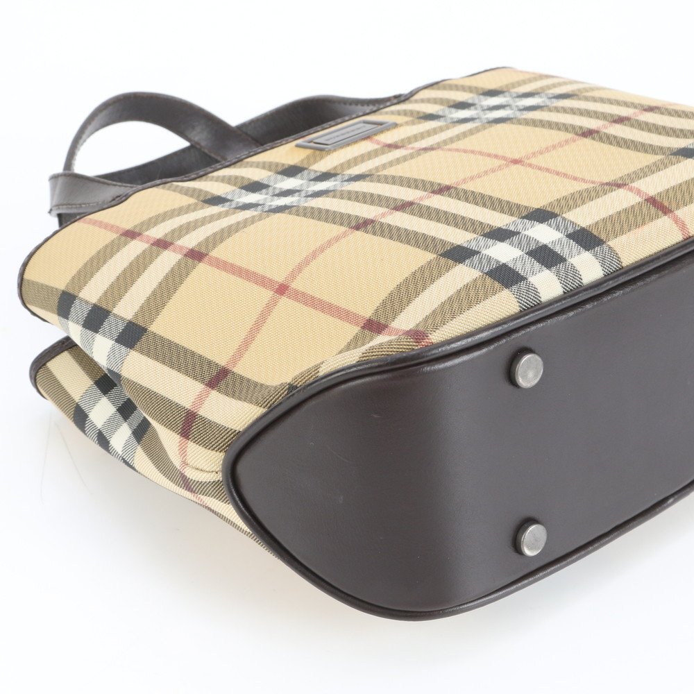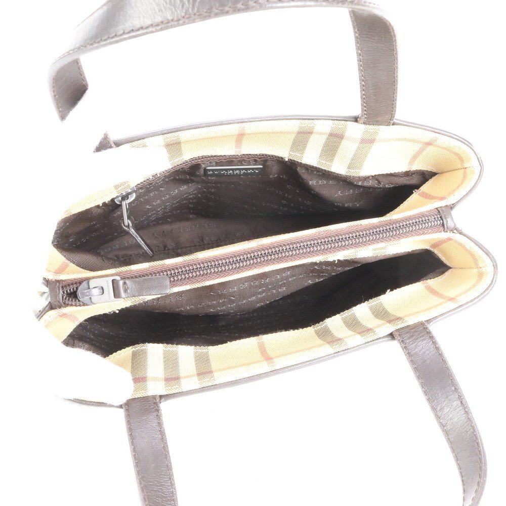1円■極美品■バーバリー■ノバ チェック レザー トート バッグ 肩掛け ショルダー ハンド ベージュ レディース EUE CX2-8