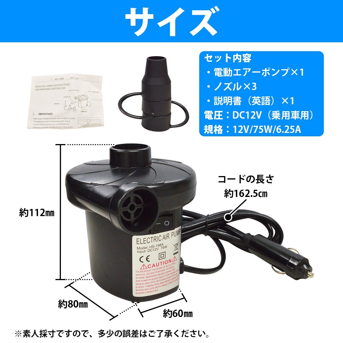 『12v 電動 ポンプ』車内で 空気入れ シガーソケット 給電 プール 海 キャンプ 浮き輪 ボート マット エアー エア 充填 車