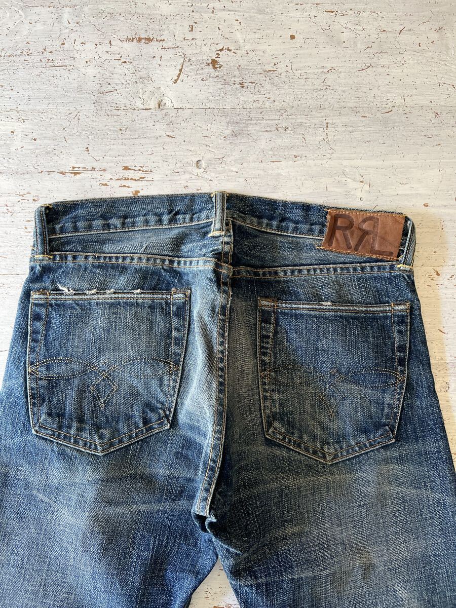 ◆特徴 アメカジを中心としたアイテムを出品しております。特にデニムには力を入れております。今回はアメリカンカジュアル代表ブランド、ダブルアールエル。USA製の本格デニム。ユーズド加工を施し縦落ち、ひげ、あたり、クラッシュなどを再現。ベーシックなデザインなので流行りすたりに関係なく長く愛用できます。男心くすぐるディテール満載。革パッチ、フロントボタンフライ、セルビッジ、裾チェーンステッチ。