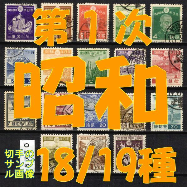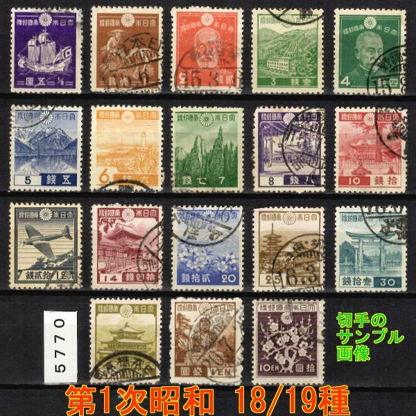 5770◆使用済 1937-【第1次昭和 18/19種】鎌足除く・サンプル画像◆状態や消印はロット毎に様々◆送料特典⇒説明欄