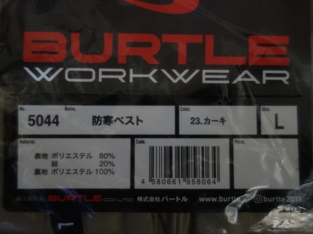 展示品★バートル 5044 L カーキ★防寒ベスト★BURTLE