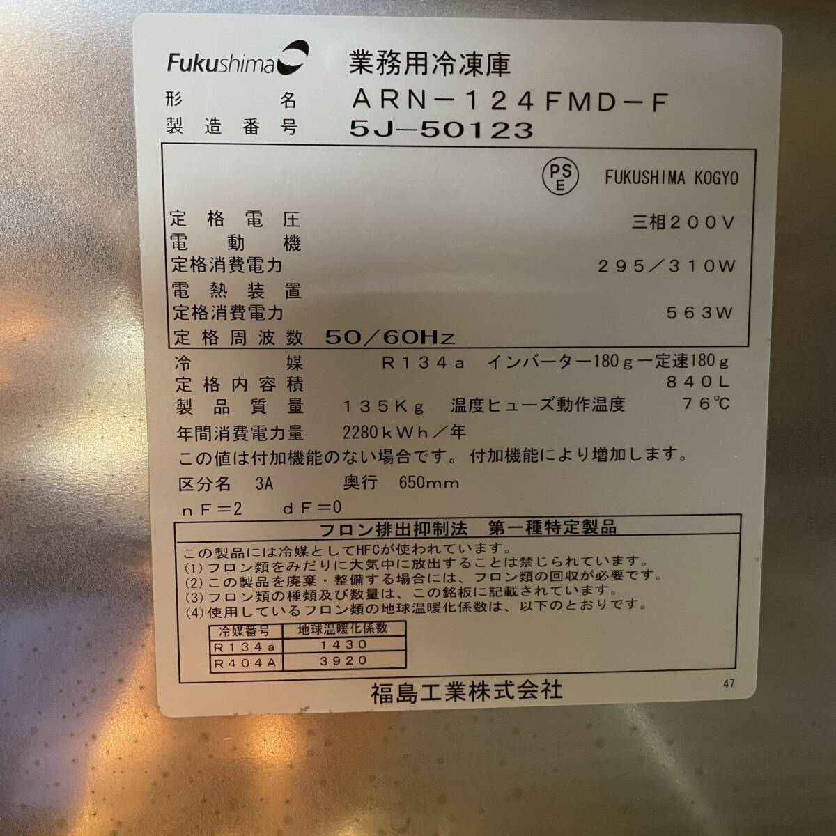 ☆【札幌店開店三周年記念セール!!業務用4ドア冷凍庫/ARN-124FMD-F/フクシマ/2015年製/中古品/札幌発】833