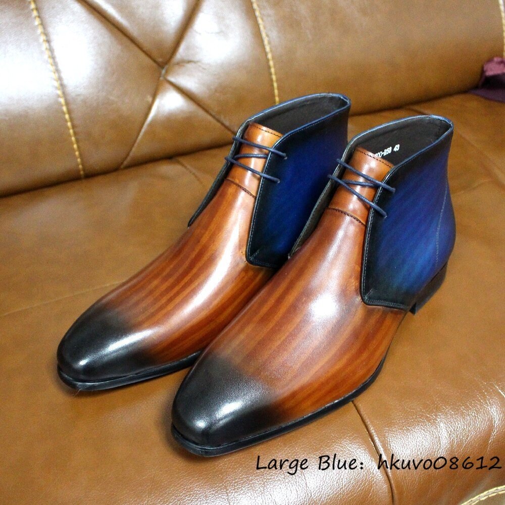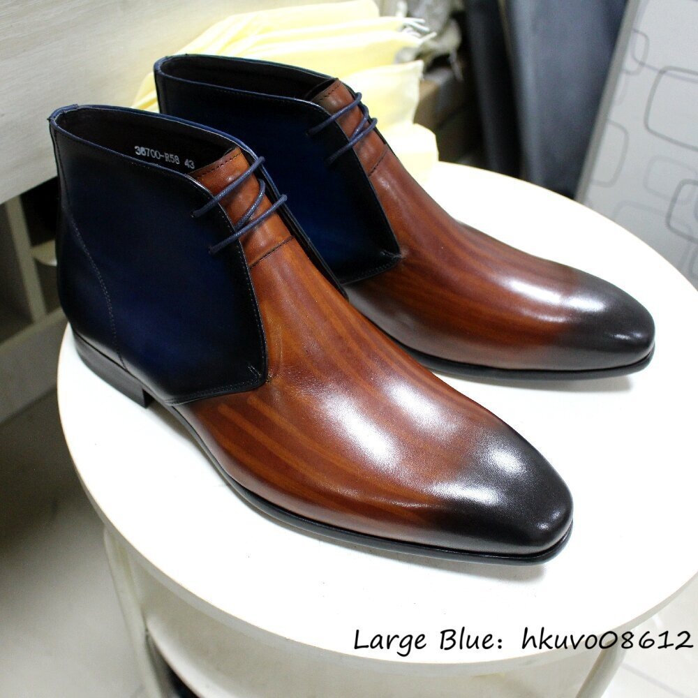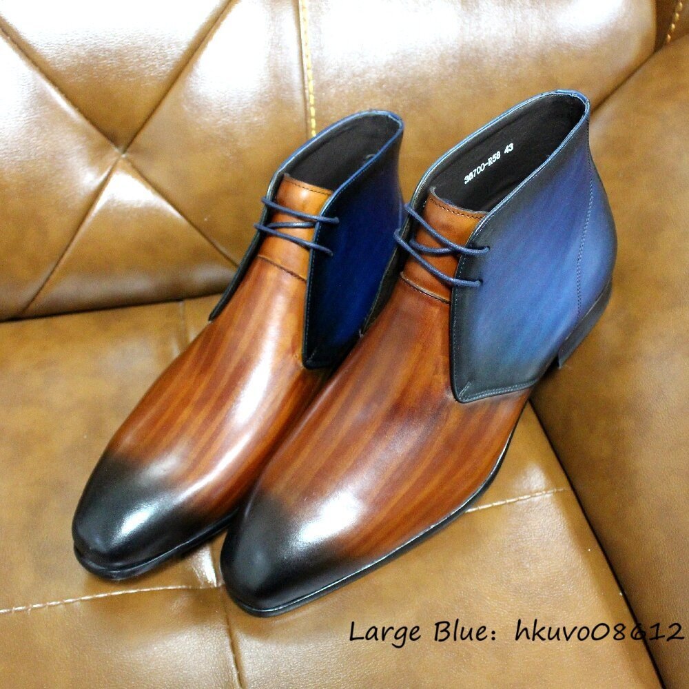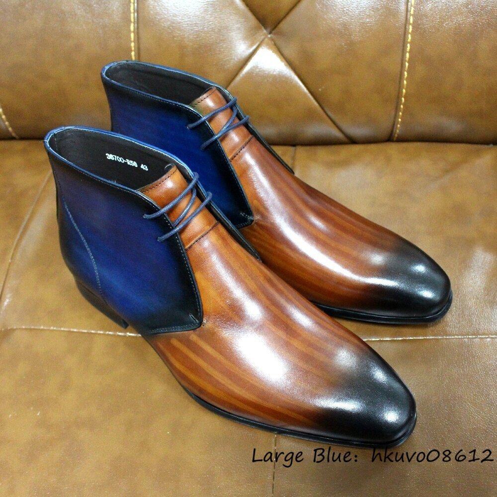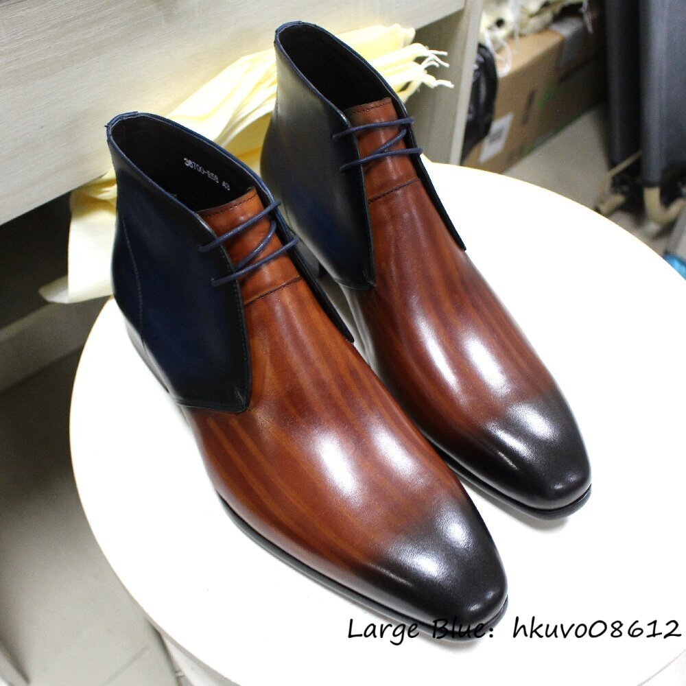超希少◆メンズブーツ 本革 レザーブーツ 職人手作り 皮靴 紳士靴 ショートブーツ マーティンブーツ 高級牛革 切替 極美品 ビジネス 24.5cm