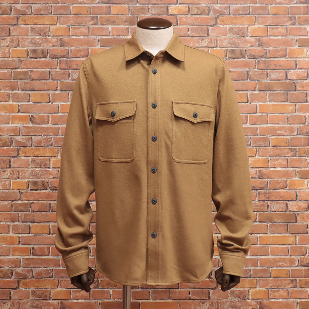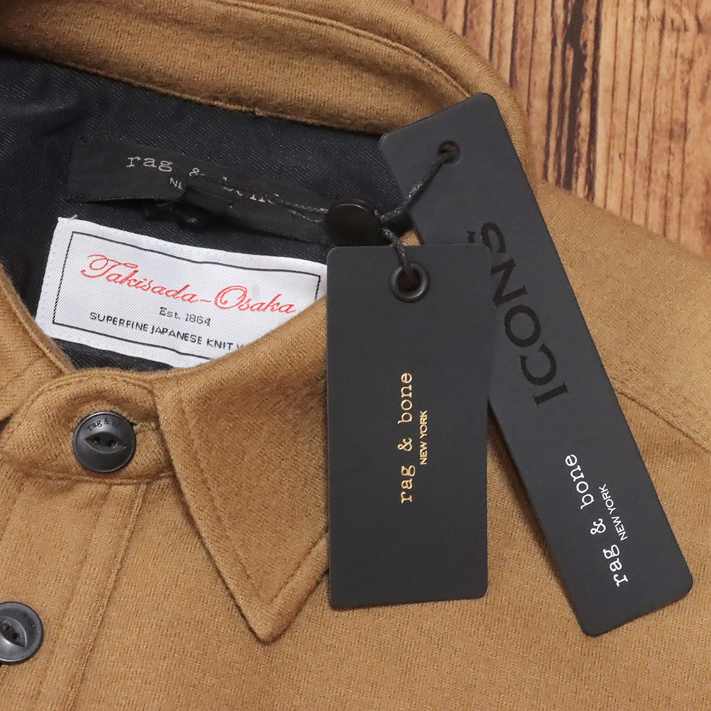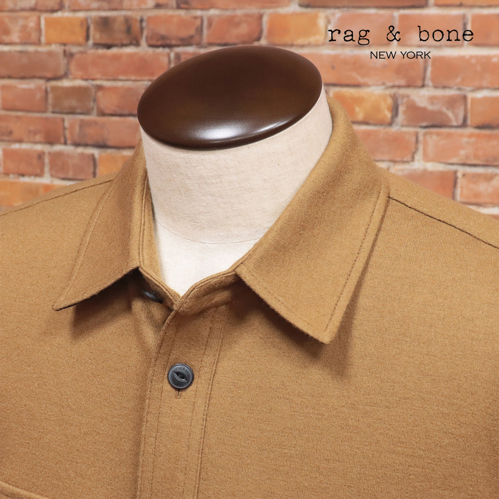 1円/秋冬/rag&bone/Lサイズ/ニットシャツ MBW22FA336TDML 国産生地TAKIADA ウール100% ワークポケット 長袖 新品/茶色/ブラウン/mb286/