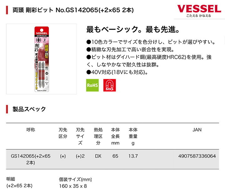 VESSEL 両頭剛彩ビット No.GS142065(+2×65 2本)