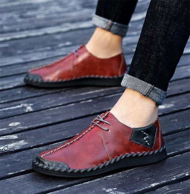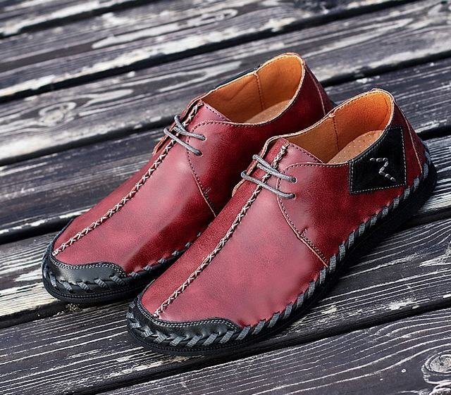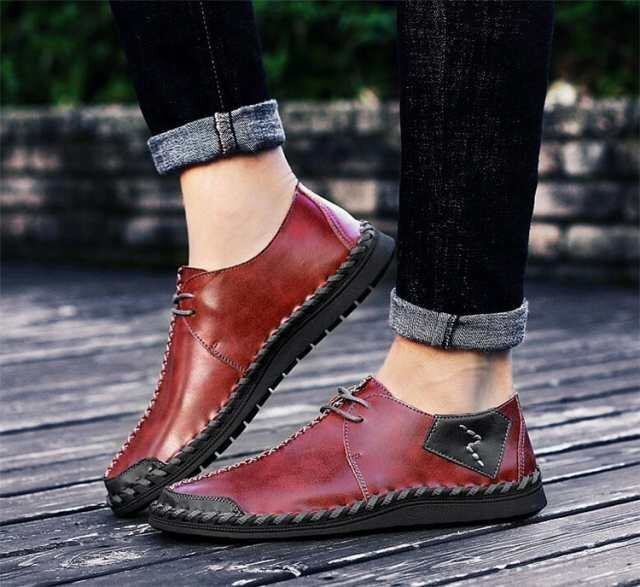 ビジネスシューズ メンズ スリッポン レースアップ 靴 本革 ビジネスシューズ ドライビングシューズ 手作り 紳士靴 レッド 25.5cm