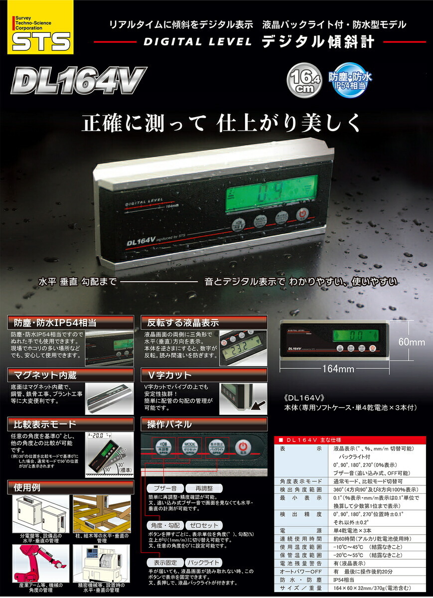 〈STS〉防水型デジタル傾斜計 DL164V JAN:4514095120315