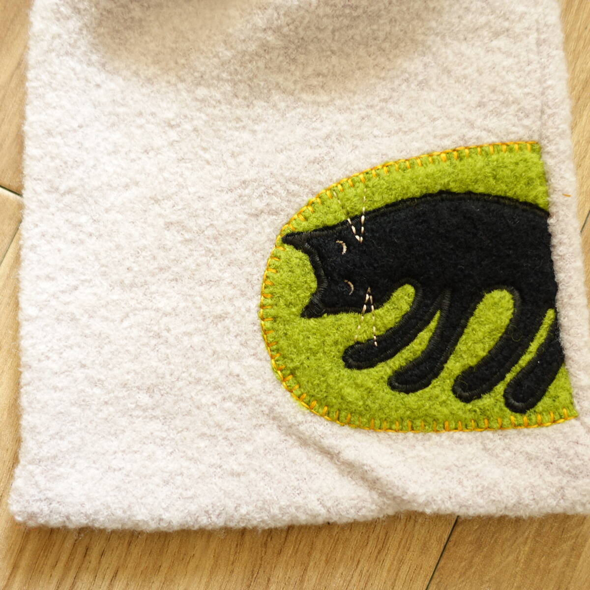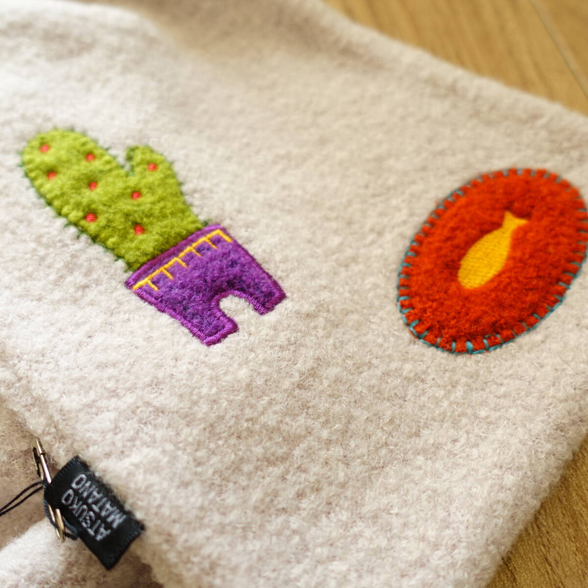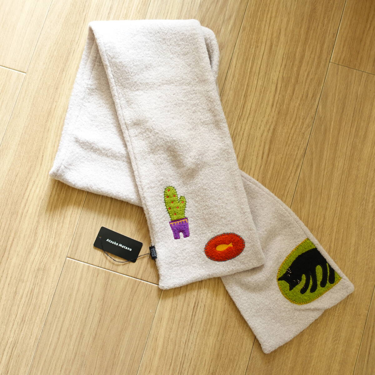 可愛らしい ネコ、サボテン、魚、のウールマフラーです。